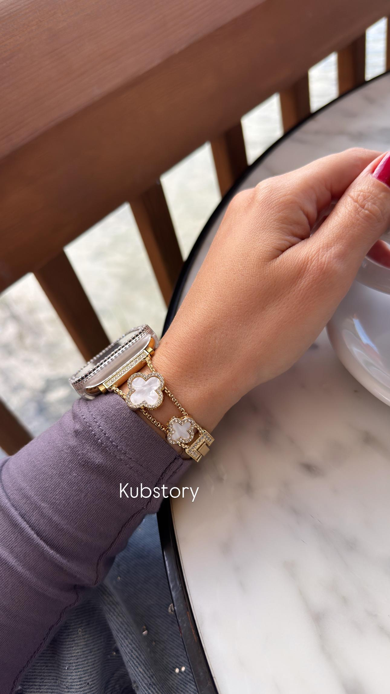 Özel Seri Zirkon Taşlı Sedefli Yonca Metal Kordon Gold