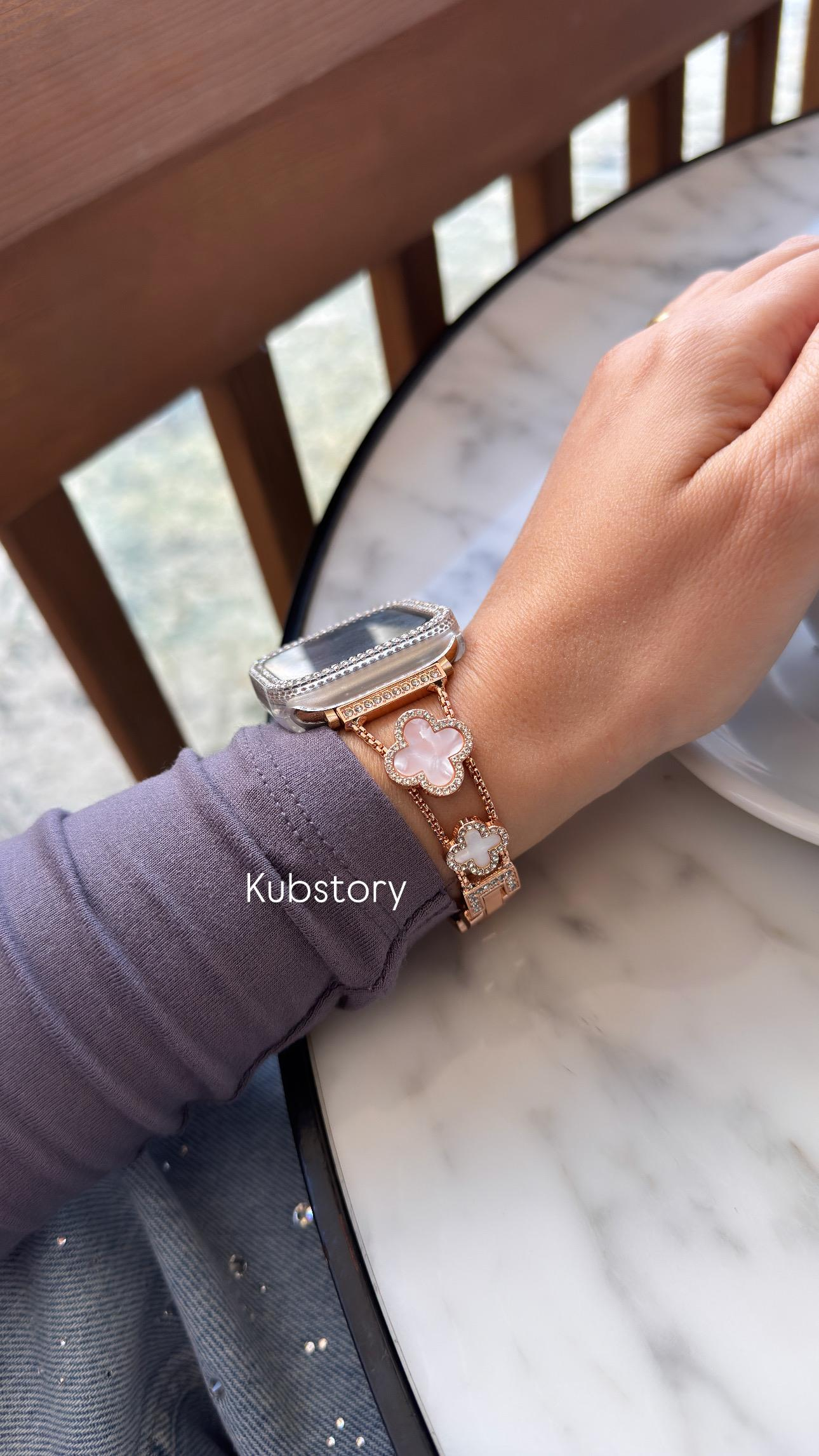 Özel Seri Zirkon Taşlı Sedefli Yonca Metal Kordon Rose